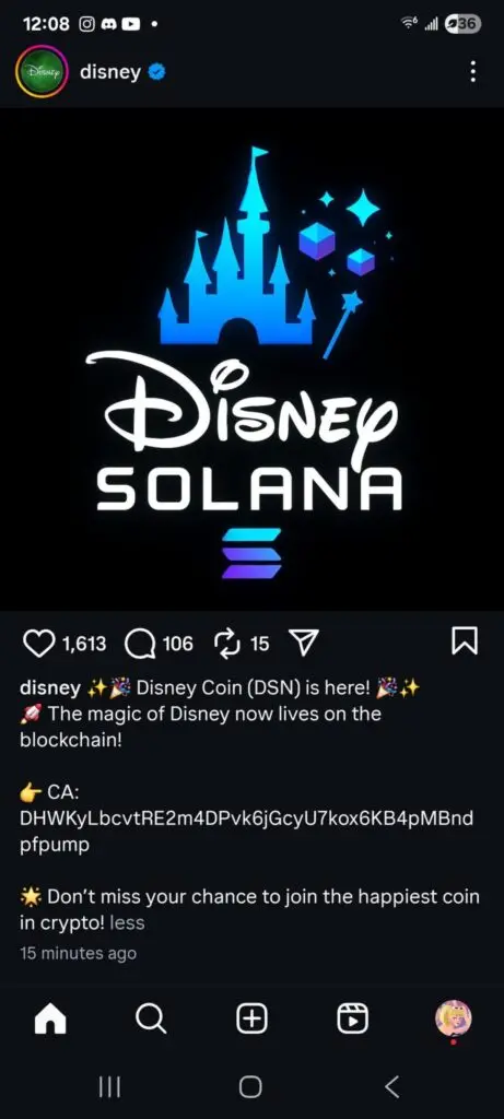 People on Reddit and X started sharing screenshots of the posts. Some users were confused, thinking Disney had actually launched a cryptocurrency, while others immediately recognized that the accounts had been compromised.
