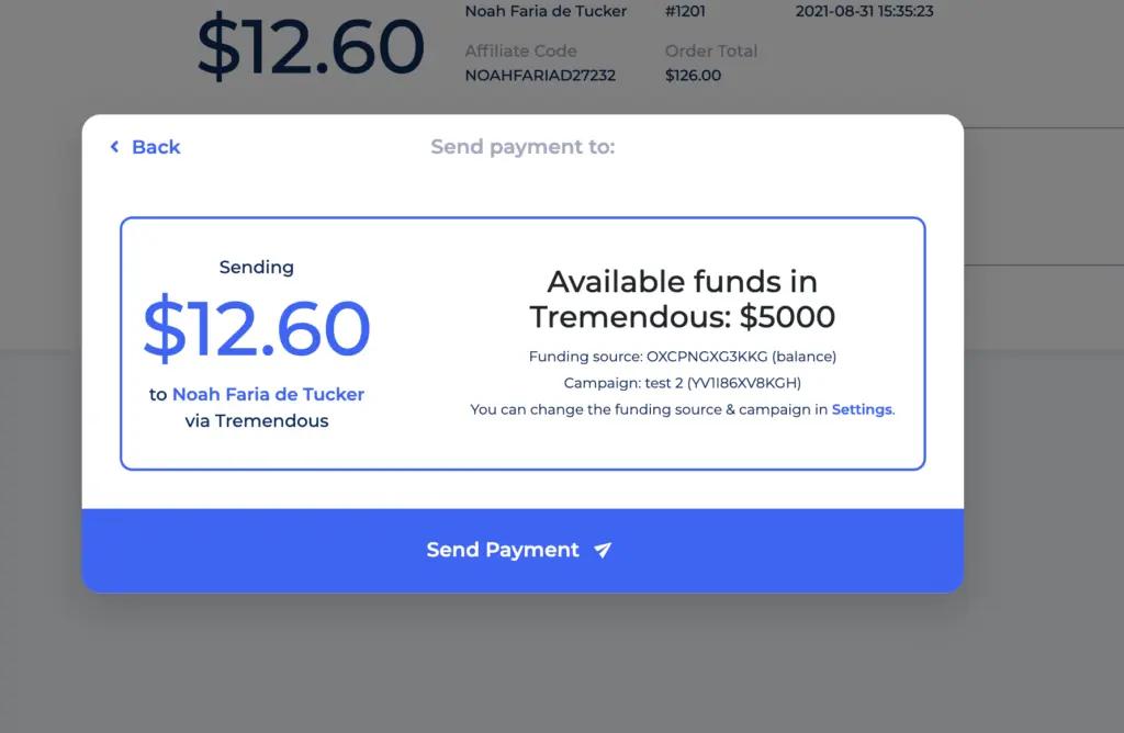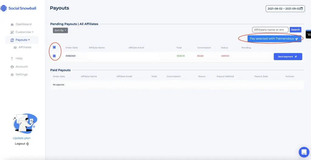 The final step in the process is setting up how you’re going to handle payouts. Ultimately, your affiliates will choose which method works best for them, but they’ll choose from the list of options that Snowball supports. For ease of use, you’ll want to do what you can to nudge them into using Tremendous, which you can integrate with. Payouts are instant, and can be done in bulk—as your affiliate network grows, bulk payments becomes very important. For a quick transfer of funds, though not necessarily an automated payout, you can manually pay affiliates via PayPal. An integration with Veem makes ACH transfers much easier, too: you input your bank details, the affiliate adds hers, and Snowball takes care of the rest. The other manual options are Venmo, Zelle, and CashApp.