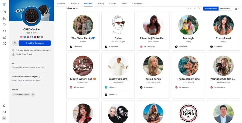 Right from the beginning, looking through any profile will show you just how much you can learn as you click through influencers, content, and your competitors. It would be easy to find yourself going down the proverbial rabbit hole, as every piece of data and information links to more, which then links out to more, and so on. Brand profiles look just like influencer profiles on Tagger, so both give you deep and useful insights: Is their audience authentic? If it is, what sort of authentic humans are in that audience? Where are they? What topics are they talking about? Because of the social listening aspect of this, the information is a lot more reliable. When Tagger shows you an audience that’s into topics like Fashion, Health, or Food, it’s not just because they follow some accounts in that space. They’re actually talking about it (said another way: this is the stuff they engage with).