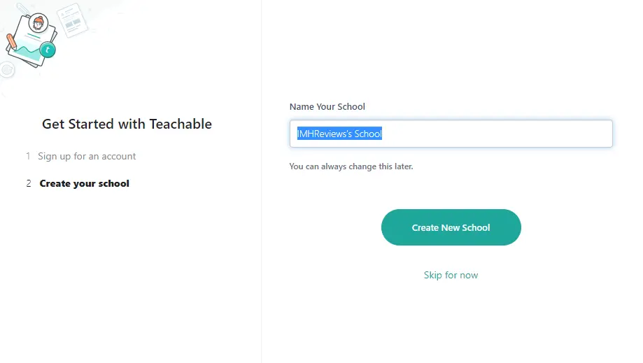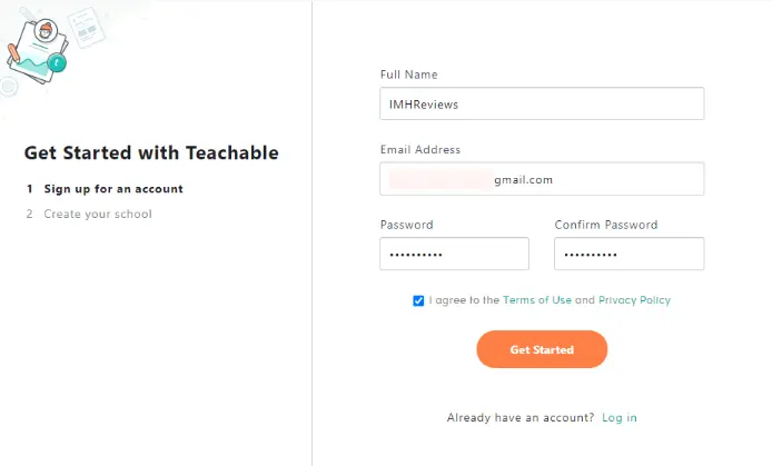 Take the sign-up process. It takes all of two steps to create an account. Best of all, if you’re not ready to commit financially, you’re not pressured to either. Teachable automatically offers a demo account for you to get started and you don't need to enter your credit card details until you’re ready to enroll students and make your site live.