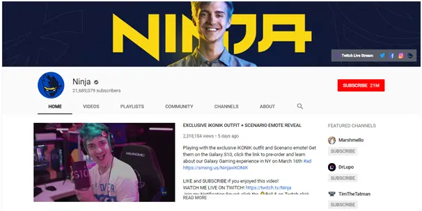 On YouTube, he has even created sponsored content to promote brands like Samsung. He has also been known to create sponsored content for non-gaming brands like Red Bull on Twitch.