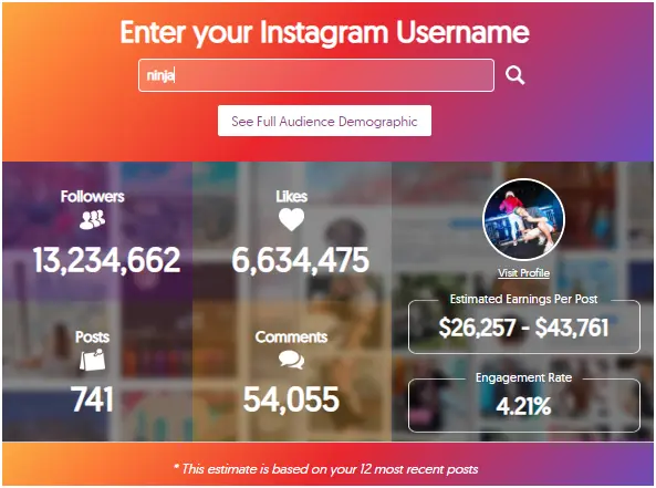 Ninja has an even better engagement rate of 4.21%. This far exceeds the average engagement rate of most influencers and users on the platform. The number clearly shows that this influencer doesn’t have just a high follower count but also manages to keep a decent amount of those followers engaged with his content.