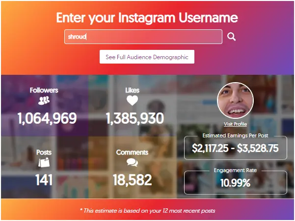 What’s even more impressive is that Shroud manages to drive an engagement rate of 10.99%. This shockingly high engagement rate suggests that his content on Instagram is interesting and highly engaging for his fans.