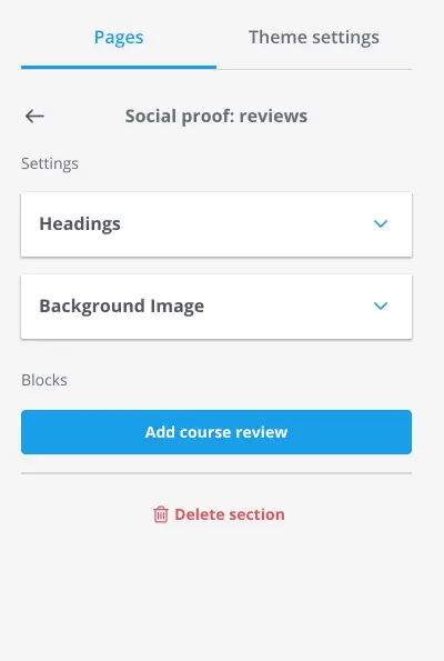 Another helpful feature that comes with Reviews is the ability to pull them into your site builder when you're creating your sales page. All you need do is add a Course Review block, make a course selection, and then choose the review you'd like to add.