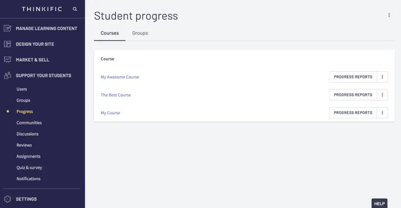 Groups is one of the smartest additions to Thinkific. If you're familiar with Udemy for Business, Groups make sense. It allows you to sell courses to organizations. Groups also comes with some amazing functionality. Take the team-based tracking feature. It helps you track and compare groups within an organization. For example, if you can to track your sales team versus your customer support team. You can do that and quickly and easily tell how well they are progressing with your courses.