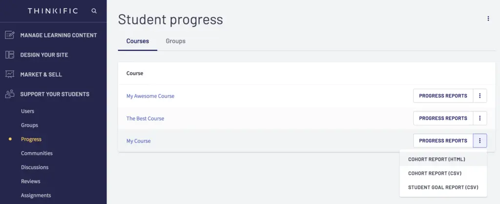 Groups is one of the smartest additions to Thinkific. If you're familiar with Udemy for Business, Groups make sense. It allows you to sell courses to organizations. Groups also comes with some amazing functionality. Take the team-based tracking feature. It helps you track and compare groups within an organization. For example, if you can to track your sales team versus your customer support team. You can do that and quickly and easily tell how well they are progressing with your courses.