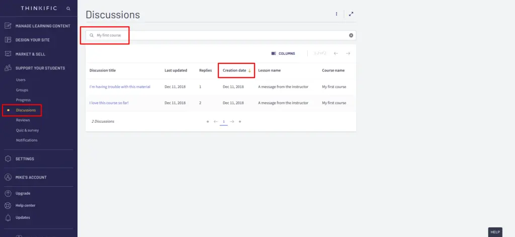 As comments and questions come in for a course, you can set up email notifications to never miss a beat. To respond to discussions, simply access your admin panel and head to the Discussion section.