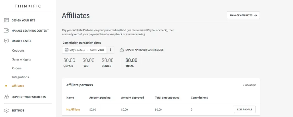Yes. Thinkific’s affiliate program is available to instructors only and controlled directly through the instructor admin dashboard.