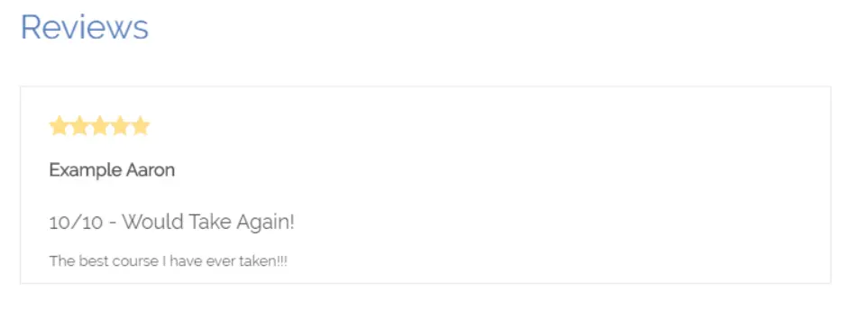 Another helpful feature that comes with Reviews is the ability to pull them into your site builder when you're creating your sales page. All you need do is add a Course Review block, make a course selection, and then choose the review you'd like to add.
