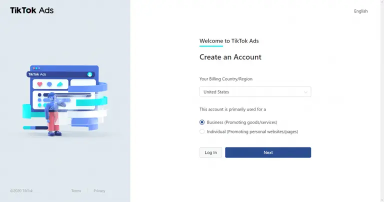 Note: If you’re in India, Vietnam, Japan, Taiwan, Malaysia, Indonesia, or Thailand, you’ll be able to sign up for a TikTok ad account directly.