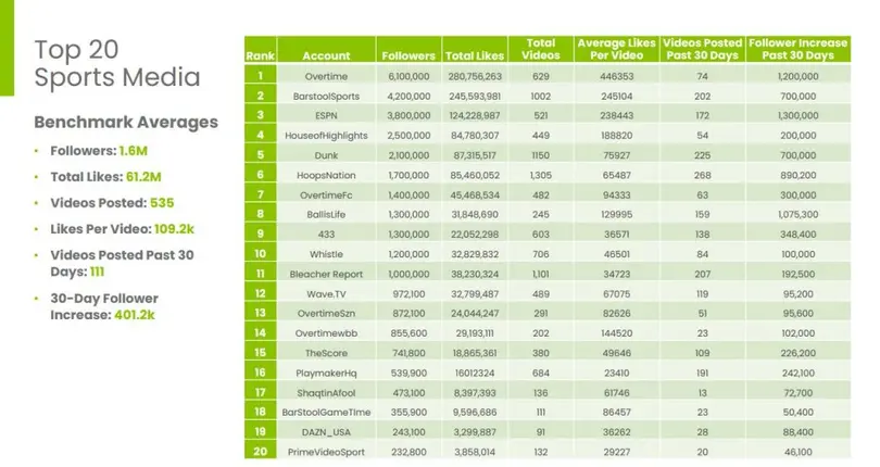 1. Top 20 Sports Media Accounts Average 1.6 Million Followers