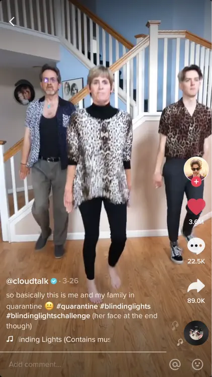 Despite the majority of TikTok users being between around the ages of 7-24, some extremely popular accounts and viral videos include people outside this age range. Some of the most notable are @WashingtonPost, @grandadjoe1933 and the success that was the #blindinglightschallenge where parents would recreate the dance with their kids.