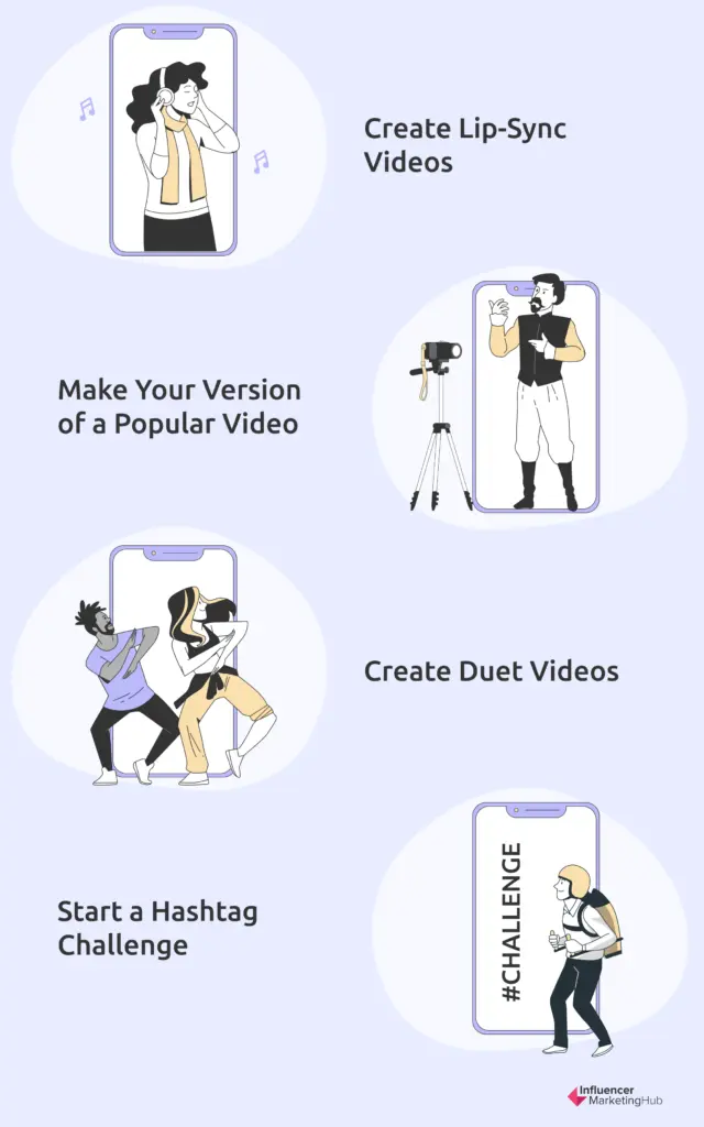 Hashtag challenges can be one of the most entertaining ways to build engagement on TikTok. Either individuals or brands can set these challenges, with brands having the opportunity to pay for Branded Hashtag Challenges as part of TikTok's advertising packages. The one limitation for new TikTok users (not paying for a Branded Hashtag Challenge), is that it can be hard to gain sufficient reach to promote your challenge until you have already built a sizable following.