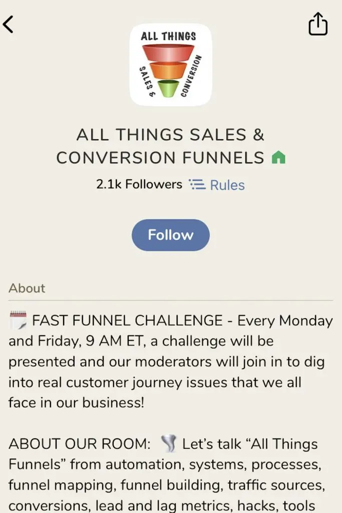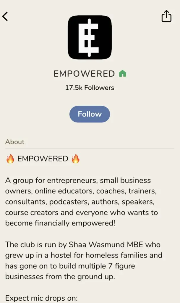 Entrepreneurs, Start & Scale Up Business is currently one of the largest groups on the platform boasting more than 100,000 followers. The room’s subjects include business, entrepreneurship, podcasting, and mindset. You can also follow Rob for more info about new rooms.