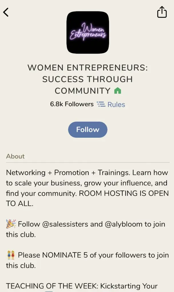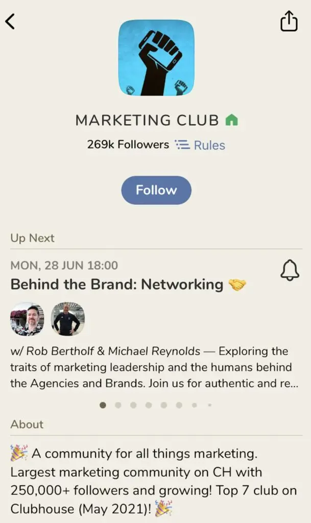 On Clubhouse, there are also clubs. These are interest-based groups that eligible users can create. To join these clubs, you often first have to follow the founder.