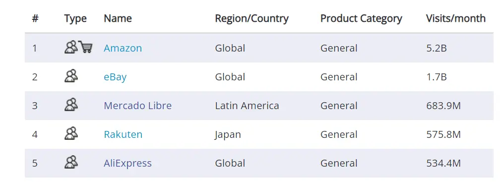 According to research, Amazon's monthly footfall runs up to 5.2 billion monthly with eBay on the second spot, boasting of 1.7 billion visits: