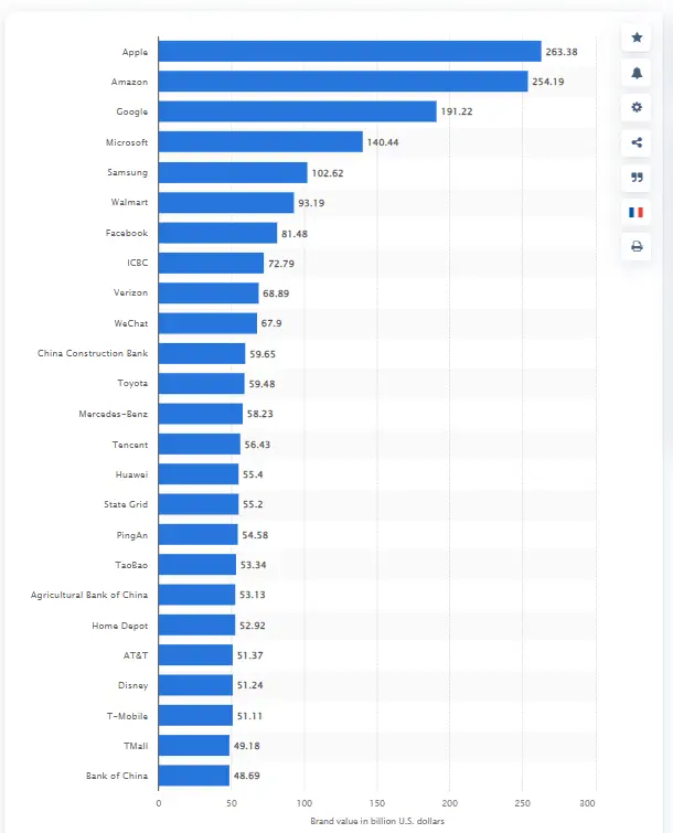 As per data, Walmart is the sixth most valuable brand in the world (as of 2021):