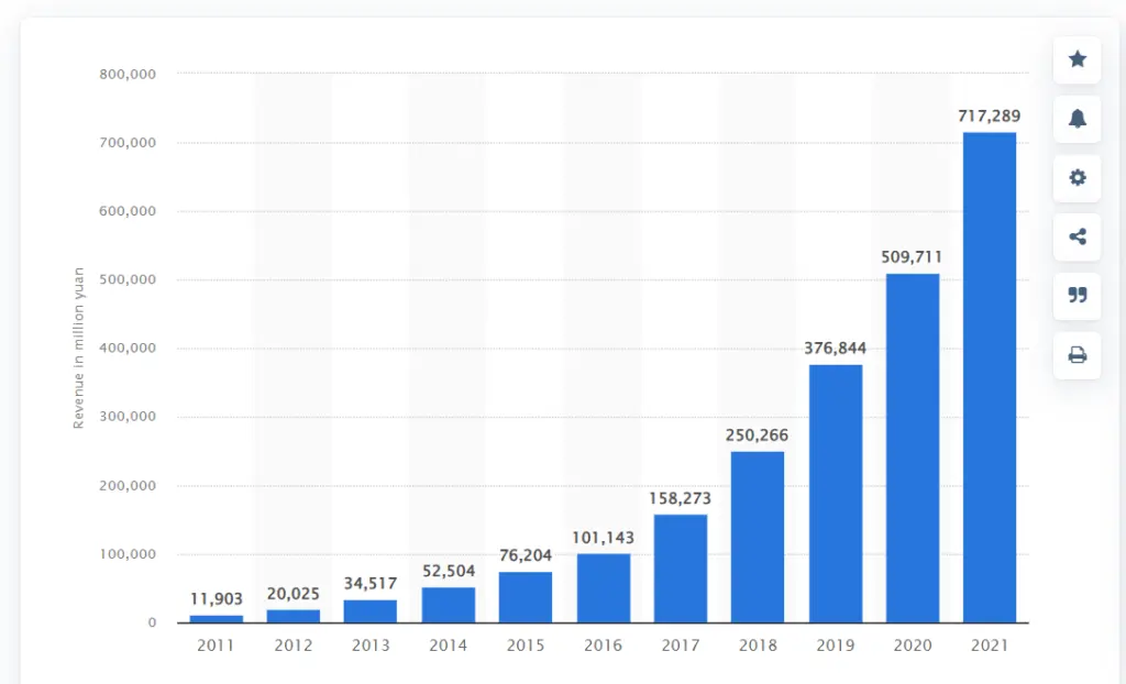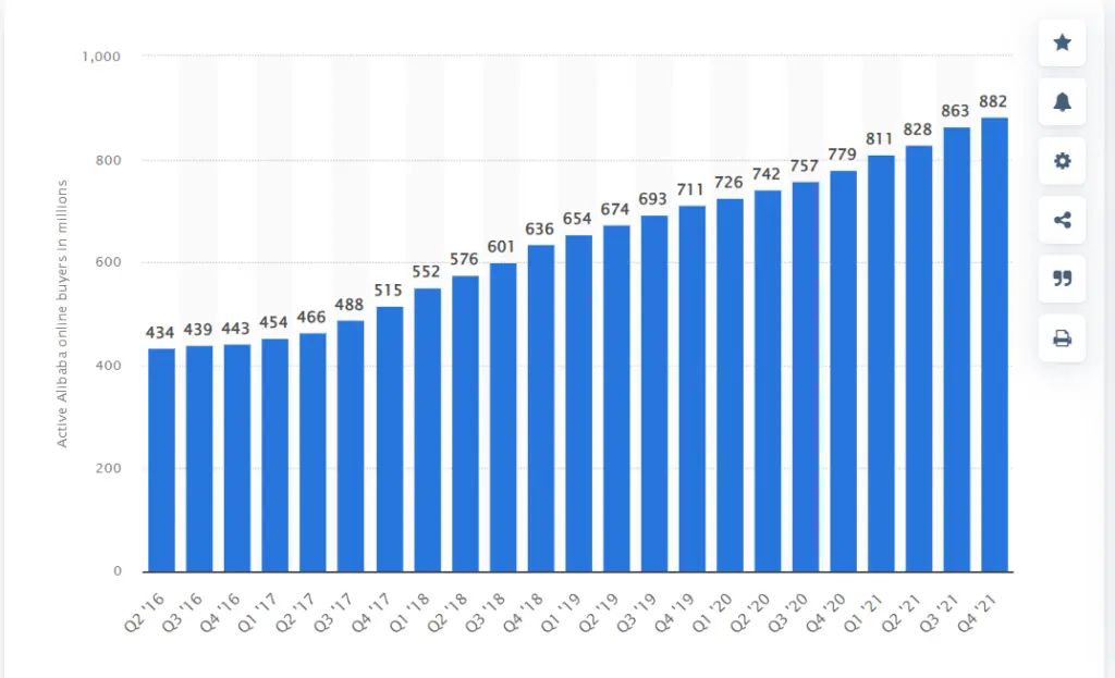 Furthermore, its number of active buyers amounted to 882 million in 2021: