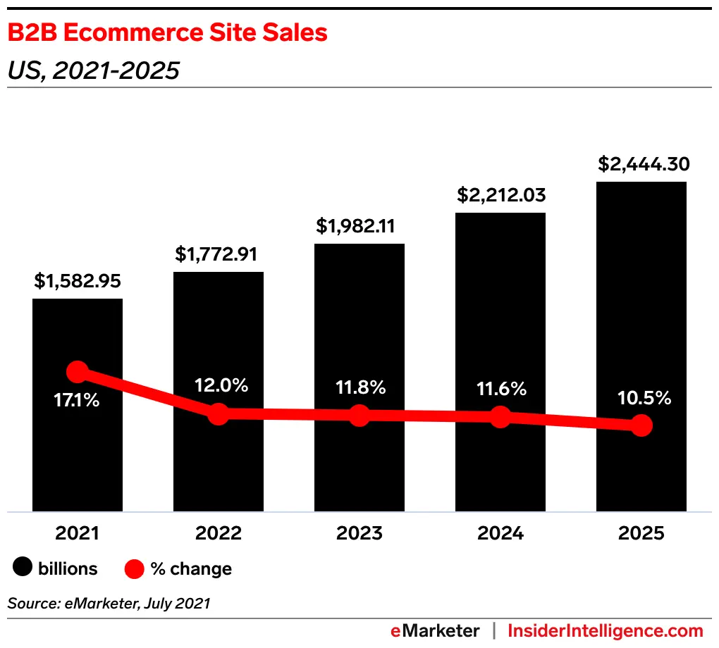 Additionally, eCommerce B2B sales, too, is demonstrating an upward trend: