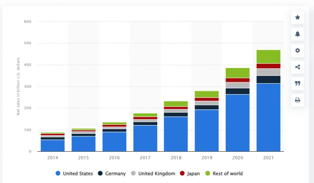 In terms of country-wise market share, here's a snapshot of the brand's net sales from 2014 to 2021: