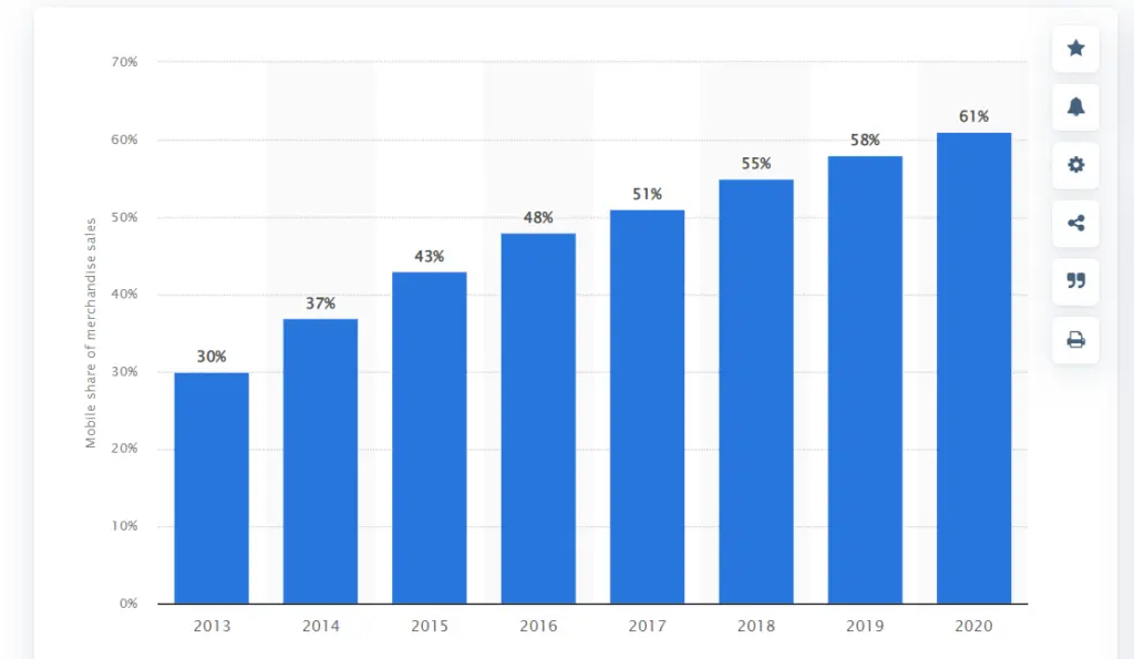 The brand's mobile app accounted for 61% of the brand's gross merchandise volume in 2020: