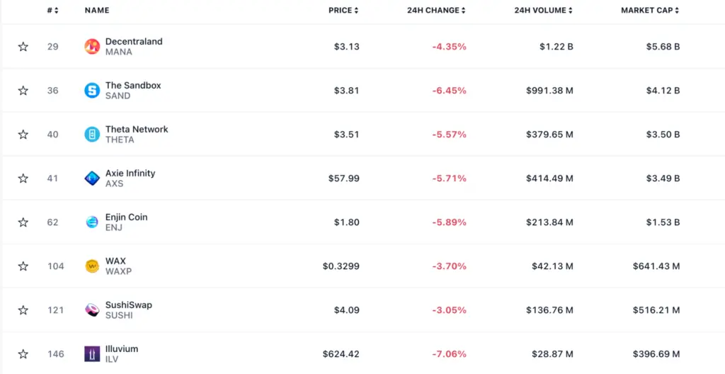 Top 15 Metaverse Coins by Market Cap Worth Investing In Today: