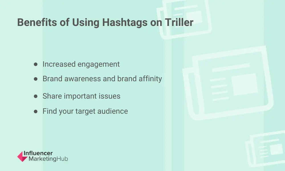 Hashtags help you increase engagement with your followers by letting you insert yourself into the conversations happening on Triller. By using hashtags, your content will be visible in those conversations, and the users following or searching the hashtag you used will be able to see your content. This can lead to increased engagement as well as increasing your followers, likes, and comments.
