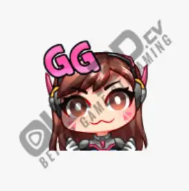 D.Va is a video game character from Overwatch. According to her backstory in the game, D. Va is a professional gamer who uses her skills to pilot a state-of-the-art make in defense of her homeland. The GG that appears on this emote stands for "good game".