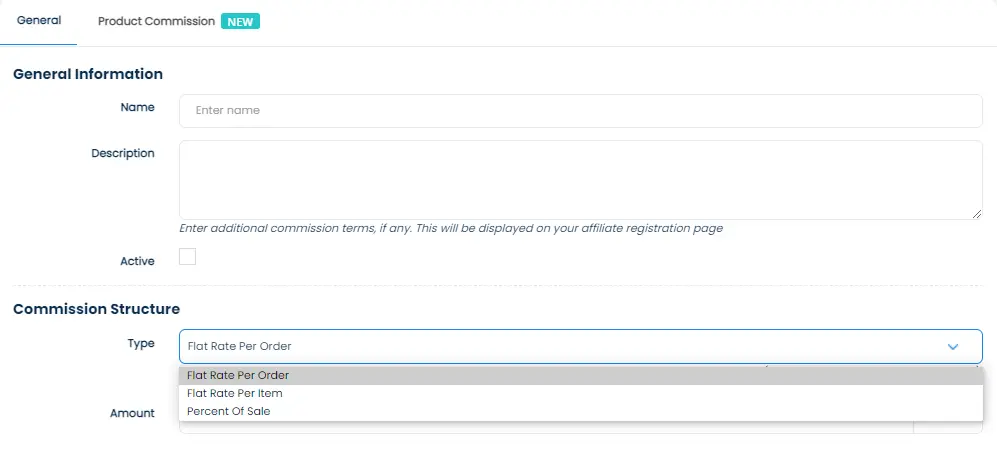 For the curious among you, just navigating through each of the menu items in UpPromote is enough to ground you. When creating your first program, you’ll notice that one is already there, waiting for you to customize it to your own preferred setting—and doing this goes a long way toward getting you oriented with what the software has to offer. This is probably because there’s not a lot here to bog you down: creating a program is as simple as giving it a name, a description, and defining the commission structure. You’ll define whether or not the commission is a flat rate per item or per sale, or if it’s a percentage of the total sale.