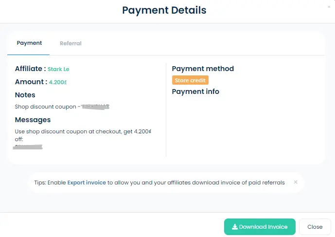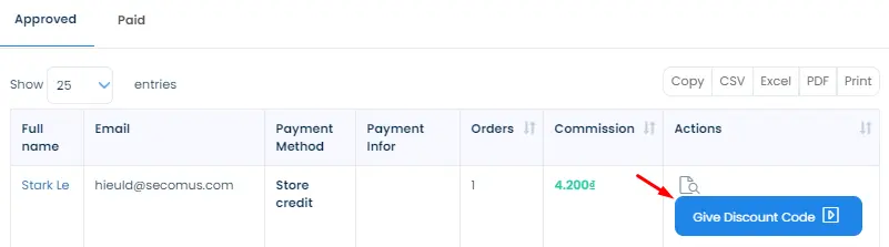 One of the unique features here is the ability to payout commissions in store credit. This is a great way to save a little money on your payouts. A $100 commission sent through PayPal costs you $100 (plus any possible fees). But $100 in store credit only costs you what you paid for the product you’re selling. When it’s time to pay affiliates in this manner, UpPromote will generate a coupon on the fly solely for their use.