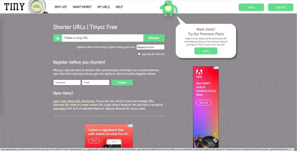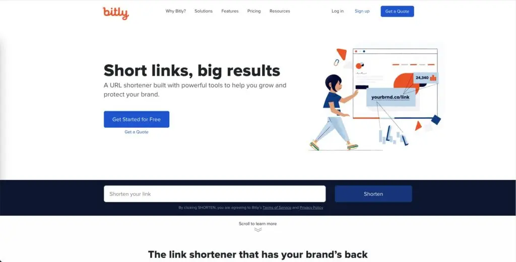 Bitly is one of the most popular URL shorteners around. It's a free service that lets users shorten links using the Bit.ly domain. If you want to use a custom domain name, you'll need to upgrade from a free to premium plan. Bitly's paid version includes link retargeting and can even provide analytics for your marketing campaign performance.