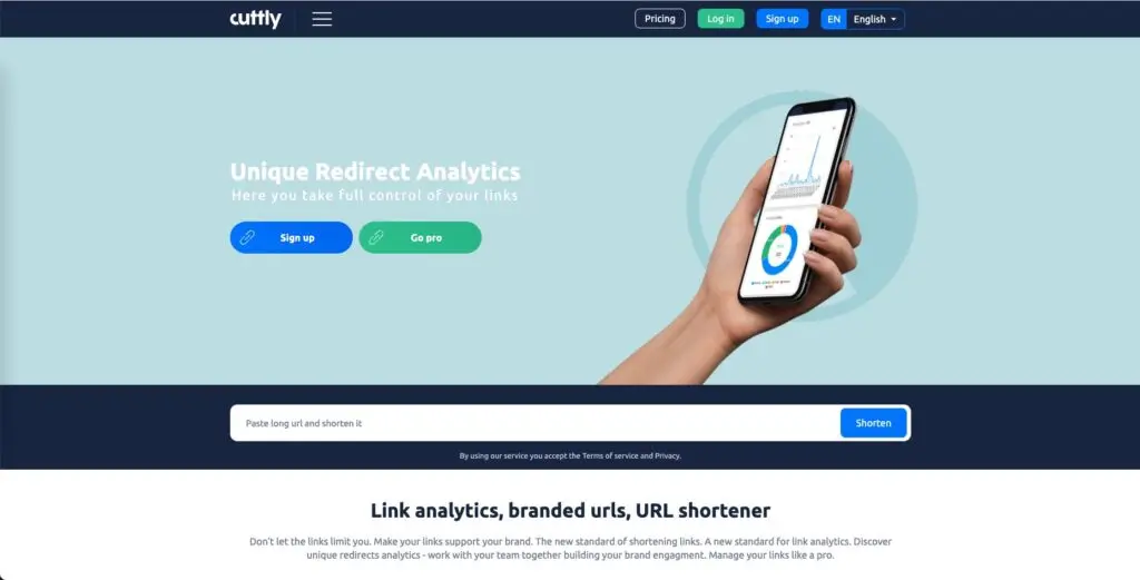 Cuttly is a URL shortener that offers several useful features like link shortening, branded links, and excellent analytics. Plus, Cuttly is free to use! You can track your links' performance in real time and the platform even includes a UTM code generator for registered users.