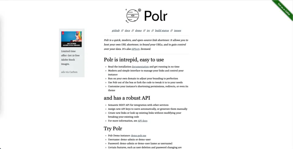 Polr is another open-source URL shortener that is great for people with a little technical prowess. You can access the tool via GitHub and either use it as-is or fork it. Polr, unlike the other open-source URL shortener on our list, YOURLS, has a much sleeker design.