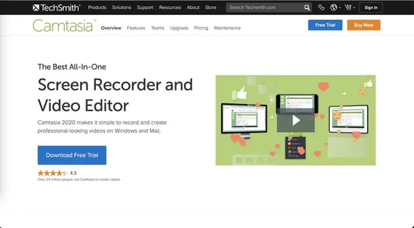 Camtasia has been around since 2002. Since then, TechSmith has kept the tool packed with all the features you need to create screencasts—like custom and pre-built video templates to make creating a great video super easy. You can use Camtasia to record your screen (or just parts of it), record footage from your webcam, and add effects and animations. There are also a number of video editing tools like zoom, pan, adding titles and callouts, and transitions. Plus, Camtasia has a large, royalty-free library and you can even add interactive quizzes. Camtasia can be purchased with a one-time fee of $249 and comes with a 30-day money-back guarantee.
