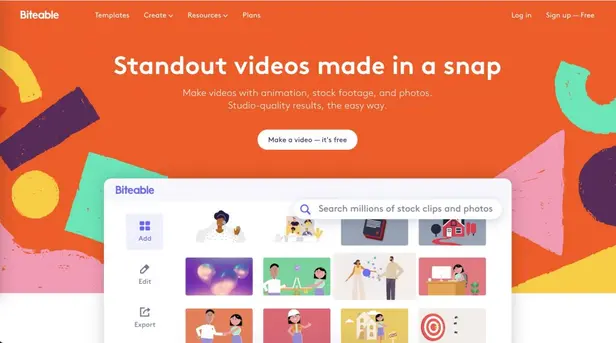 Biteable is a browser-based video editing tool that makes it easy to create slideshows, social media ads, and just about any kind of video you'd ever need. Biteable has a free plan that allows users access to its basic video editing tools and you can export your videos with the Biteable watermark or embed or share them using a Biteable link. Paid plans start at a reasonable $19 per month and include tons of additional features like HD video, commercial usage rights, reseller rights, and shared editing and projects.