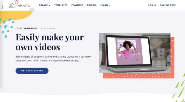Animoto is a drag-and-drop video maker that's perfect for small businesses. It comes with tons of templates that you can customize to create a truly unique video experience for your target audience, a stock library with images and videos, and a music library. You can also upload your own videos. Animoto also has basic video editing features like crop and trim, lets you add text with different fonts to your video in an overlay, and you can even add your branding to each frame. There's a free plan that includes unlimited downloads of standard resolution videos and access to 50 music tracks, 3 fonts, and 30 color swatches. Get more features with a paid plan starting at $15 per month.
