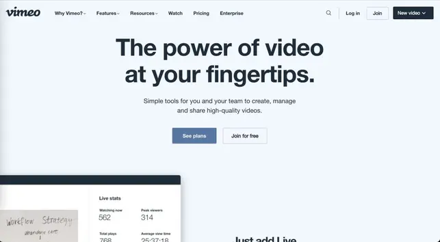 Vimeo has long been a staple in video marketing. It gives users access to customizable templates, licensed music, stock images and videos, and more. Some of the plan levels even let you collaborate on projects with team members and show time-coded feedback along with other review tools. When your video project is complete, you can share it directly to several social media platforms, and track video performance with analytics and social statistics. There's a free plan geared towards individuals who won't be uploading tons of HD videos each week and maybe don't need advanced player customization or privacy options. Paid plans start from $7 per month.