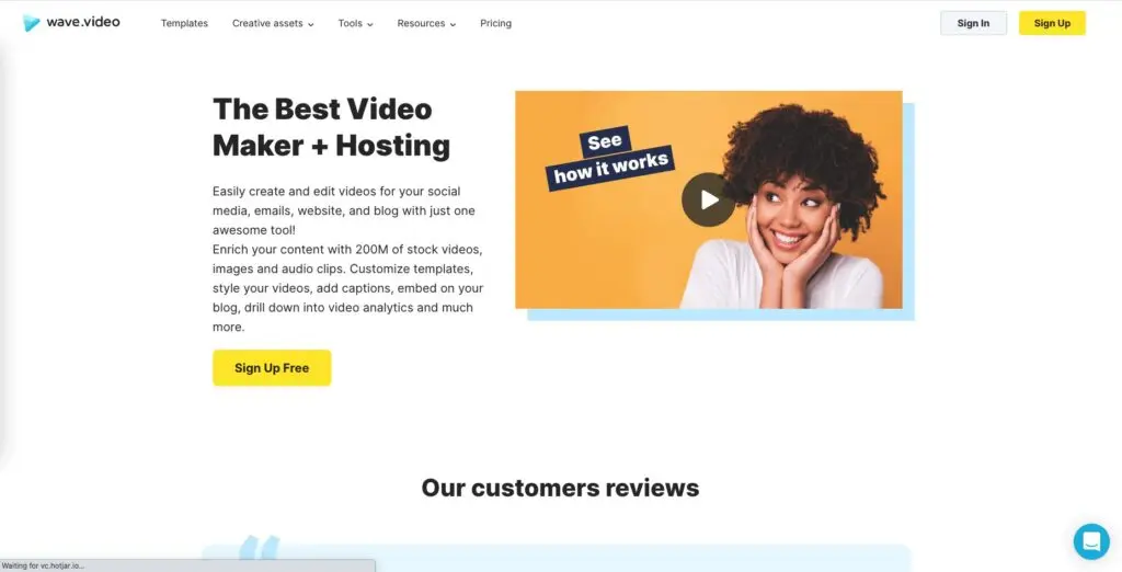 Wave.video is an easy-to-use video maker with a drag-and-drop interface so you can quickly create and edit videos for emails, websites, social media, and blog posts. Wave.video includes access to 200+ million stock images, videos, and audio clips, as well as customizable templates. There's a free plan that includes access to 2+ million royalty-free video clips and images, five video embeds, a Wave.video branded video player, unlimited social media native shares, and a 15-second editing limit. Paid plans give you access to more features and start at $20 per month.