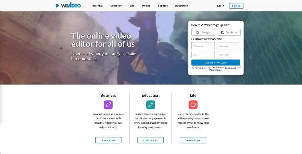 WeVideo lets you choose from multiple video formats so you can create and edit videos that are going to look great no matter where you share them. With this cloud-based platform, you'll get access to more than 1 million assets like images, videos, and music. You can add your logo to create branded templates, export your videos up to 4K resolution, and use editing tools like green screen, animated text, screen recording, and more. The free plan includes five minutes of publish time per month, 1GB of cloud storage, 480p max resolution, and the ability to create square or vertical videos. Paid plans include many more features and start at $4.99 per month.