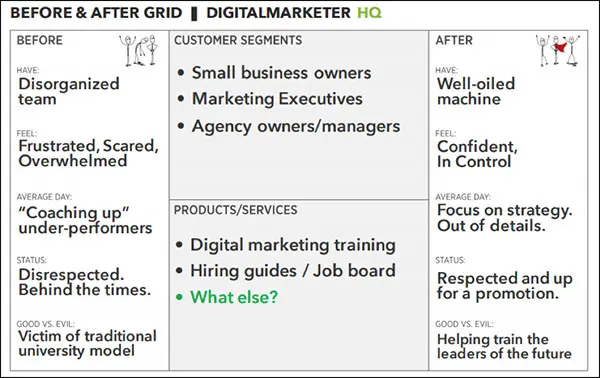 The Before and After Grid was a concept introduced by DigitalMarketer. In many ways, once you understand how to identify before and after states for your personas, you’ll wonder how you ever marketed without using them.