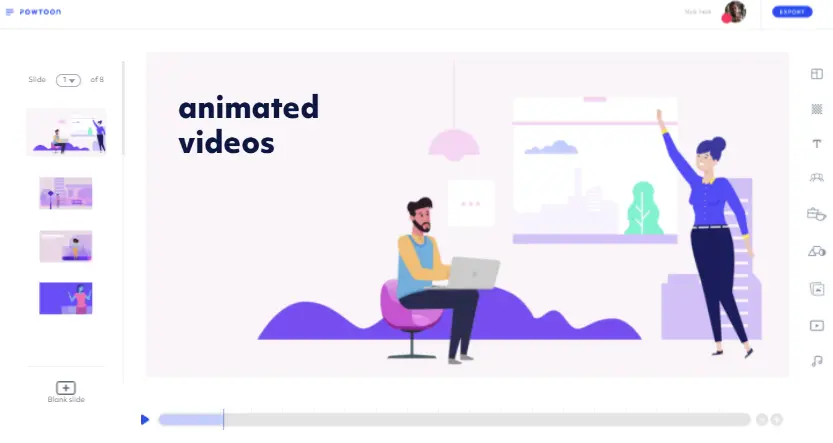 Powtoon helps you create professional and fully customized videos. Powtoons is also a powerful animation video app and can be used to create short videos. As an online video platform, it comes with a large template gallery, a selection of free soundtracks, and access to royalty-free objects.