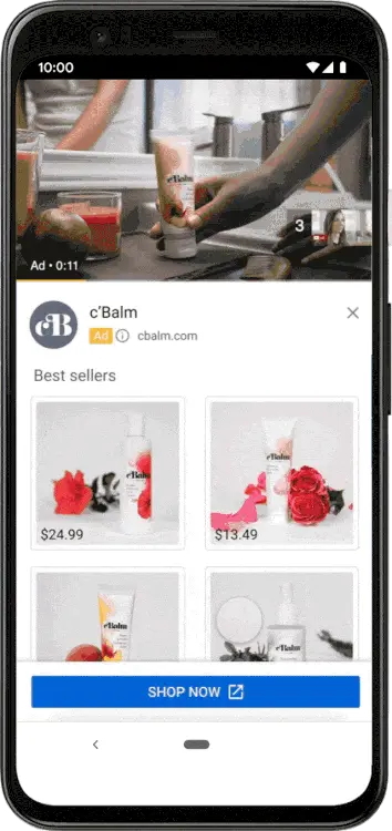 YouTube has a couple of options when it comes to creating a video shopping experience for subscribers. First, you can use the standard YouTube fare—cards and end screens—to link out to particular product pages. Beyond that, YouTube released shoppable ads in June 2020, allowing advertisers to link YouTube to their Google Merchant Center and include call to action buttons for featured products and product pages. The long-form video content platform has also announced Video Action Campaigns that automatically place video ads in the YouTube home feed, watch pages, and Google video partners from a single campaign.