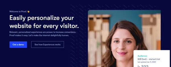 Proof is a handy web personalization tool that helps you personalize your website easily without any coding. It improves personalization by simple tweaks such as CTAs, images, and content blocks. It works with all types of websites and CMSs. The key features include: