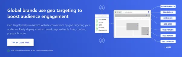If you are looking for geo personalization, Geo Targetly is the most appropriate tool to use. It targets website visitors based on their location and focuses on conversion optimization. It offers you with a lot of geo personalization tools: