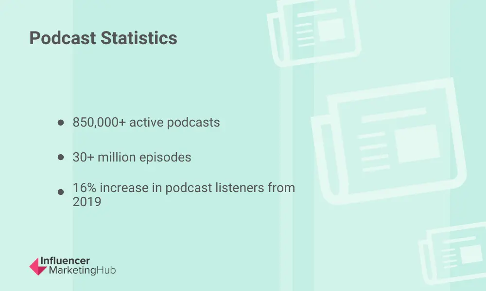 If it seems like everybody has a podcast these days, that’s because they do. There are currently more than 850,000 active podcasts with more than 30 million episodes, according to Podcast Insights (2020). Plus, monthly podcast listeners increased by 16% from 2019 to 2020 (Edison Research, 2020). It’s safe to say that podcasts are here to stay.