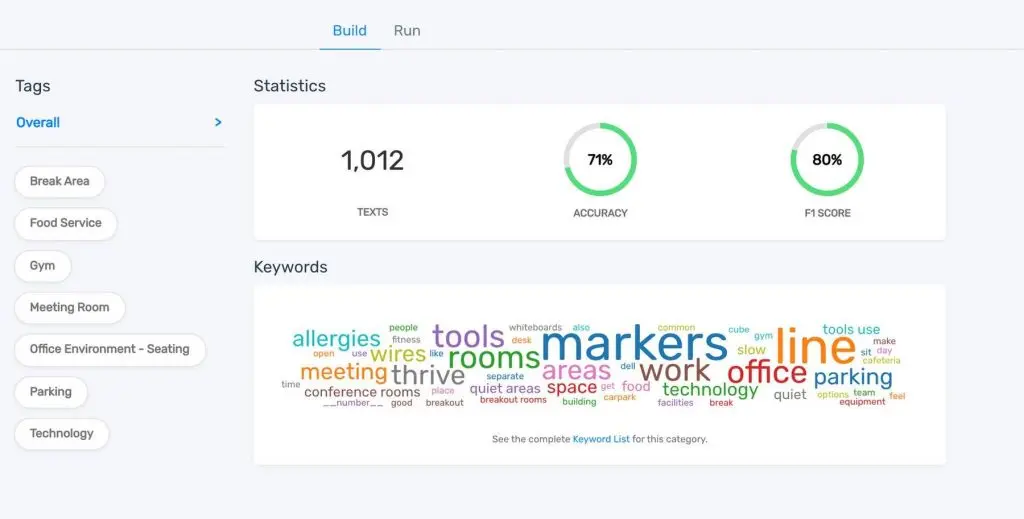 Dell used a positive feedback loop to better understand employee satisfaction. Plus, since they were dealing with 10,000 employee satisfaction surveys, they automated their feedback loop to make the entire process a whole lot easier. With this feedback loop, Dell was able to get employee feedback about food service, meeting rooms, break areas, the gym, parking, technology, and the office environment. Here's an example of the reporting from this feedback loop from the tool MonkeyLearn: