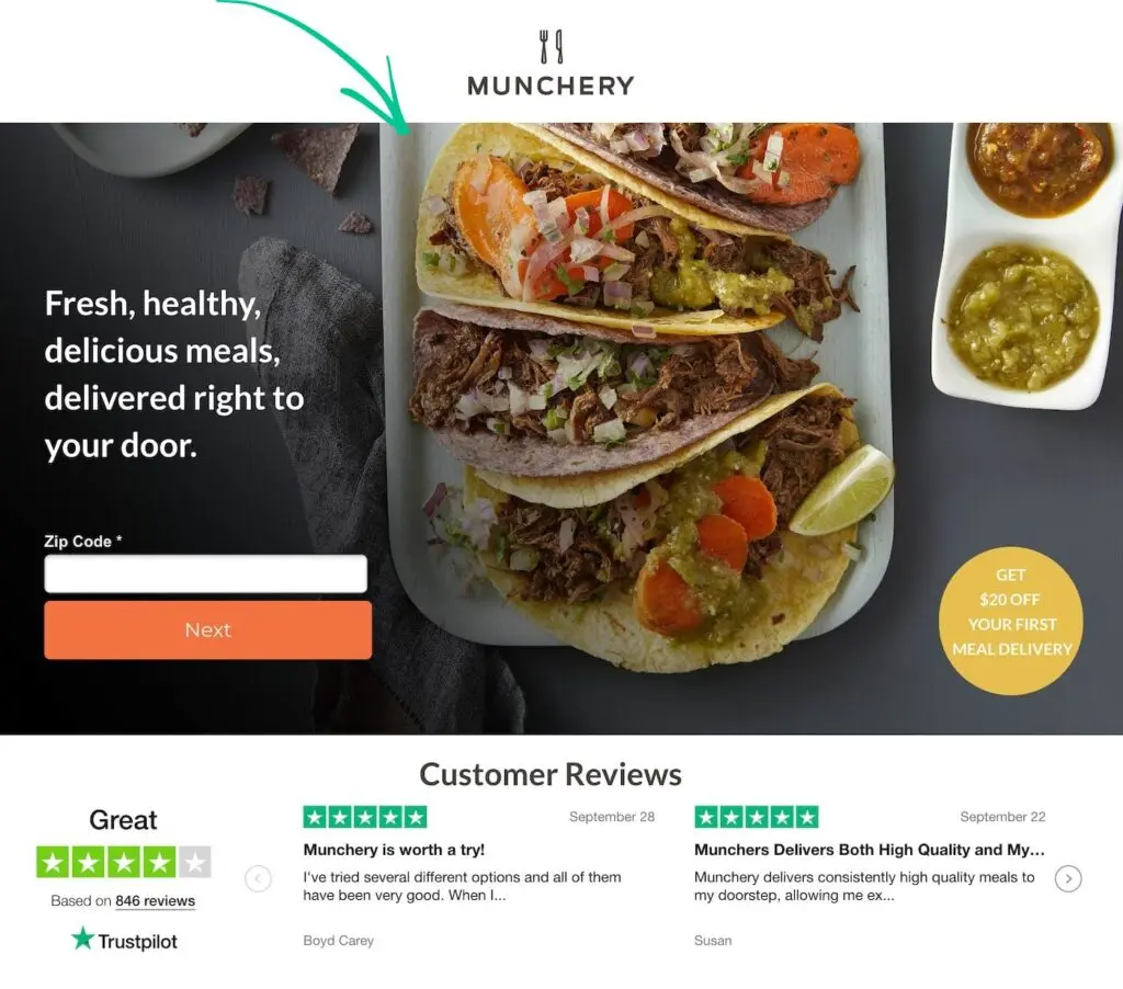 Many landing pages include an eye-catching image or video near the top of the page. These are called hero images and serve to engage visitors to your page as well as share with visitors what your product looks like or how it works.