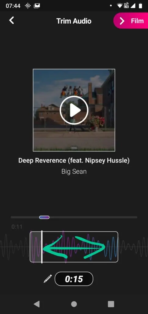 After you’ve found the song you want, choose the part of the song you want to feature in your video: