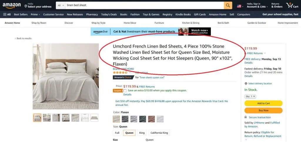 For example, an optimized product detail page will include a detailed product name or title, which would produce better results than a very general title such as “Linen Bed Sheet”. This is because each word in the product title is searchable even when used on its own.