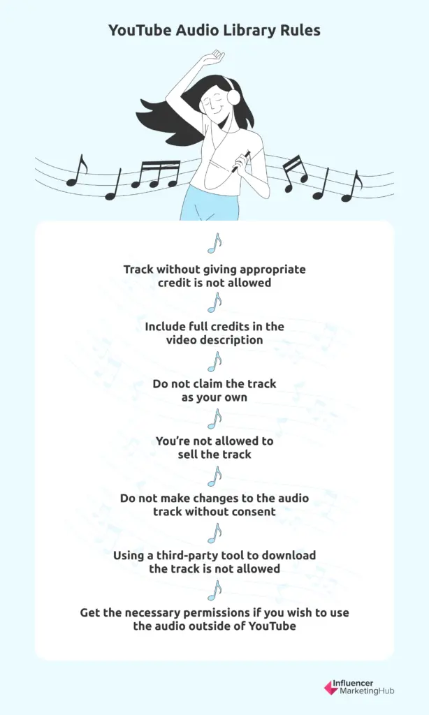 For starters, you must follow the YouTube Terms of Service. These terms are regularly updated so make sure to stay on top of any changes. Additionally, you should also follow the rules laid out in the official YouTube Audio Library channel. Here are the rules you need to follow in order to use music from the Library: